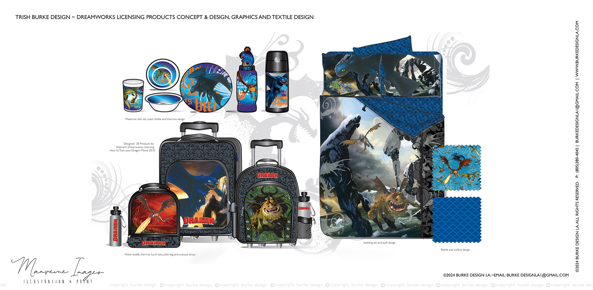 Dragon bedding, bath, luggage, mealtime, lunch boxes and textile design